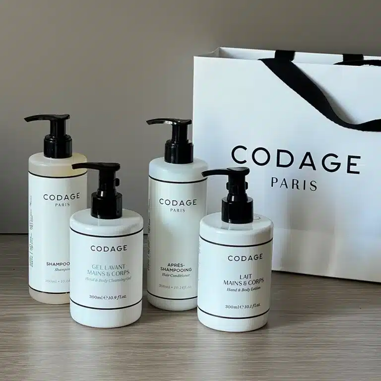 Codage Bath Line, made in France, includes skincare and hair care. In addition, they are known for their elegant packaging, effective formulas, and use of natural ingredients.